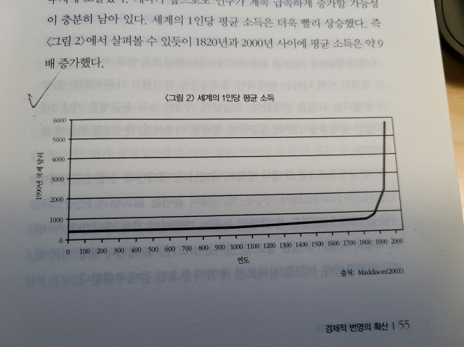 1800년경 이후로 지난 2세기는 경제사에서 독특한 시대였다. 이 시대를 위대한 경제사가인 사이먼 쿠츠네츠는 “현대적 경제 성장의 시기”라고 명명했다. (54쪽)